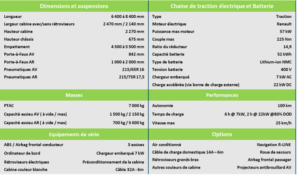 Le châssis-cabine « M65-ev » est 100% électrique permet de répondre à des besoins à très forte charge utile, tout en étant soucieux des enjeux environnementaux.